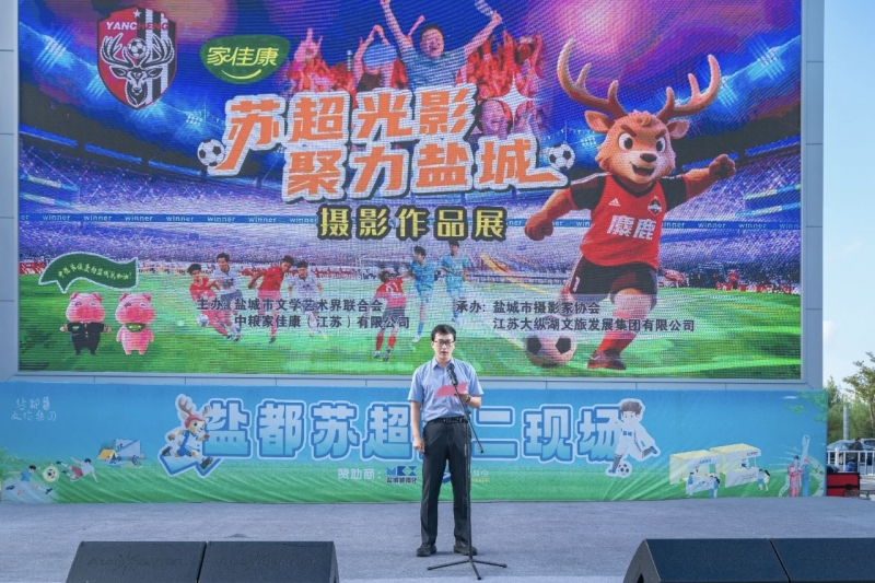 金秋十月,光影留情。2025年10月8日下午4时,“中粮家佳康”杯“苏超光影 聚力盐城”主题摄影展在盐龙体育公园正式拉开帷幕。本次活动由盐城市文学艺术界联合会、中粮家佳康(江苏)有限公司共同主办,盐城市摄影家协会、江苏大纵湖文旅发展集团有限公司承办。