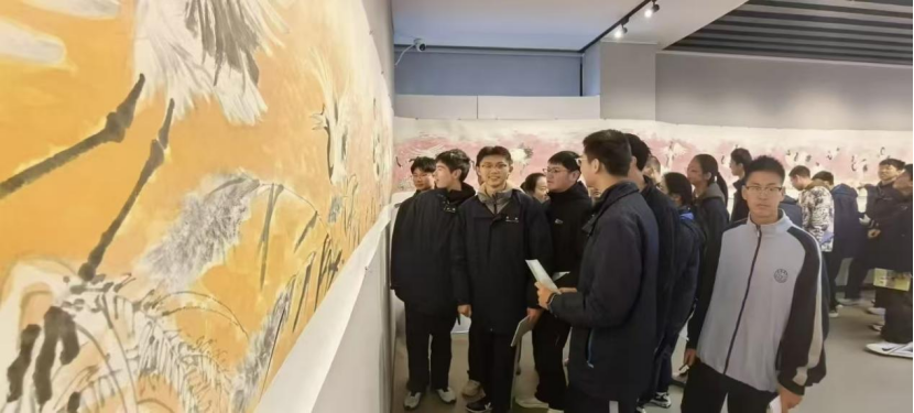 罗时荣在致辞中指出,《湿地之光》长卷不仅是水墨艺术语言的创新探索,更是艺术家人文情怀与时代担当的生动彰显。将《湿地之光》这样的优秀作品引入校园,是“文艺进校园”活动的深化实践,这既是一堂生动的美育实践课,也是一次深刻的生态文明教育课。希望同学们通过欣赏这幅长卷,不仅领略艺术之美,更能感受到家乡湿地的独特魅力,在心中播下保护生态、热爱家乡的种子,成长为具有审美素养、生态意识和家国情怀的新时代青年。